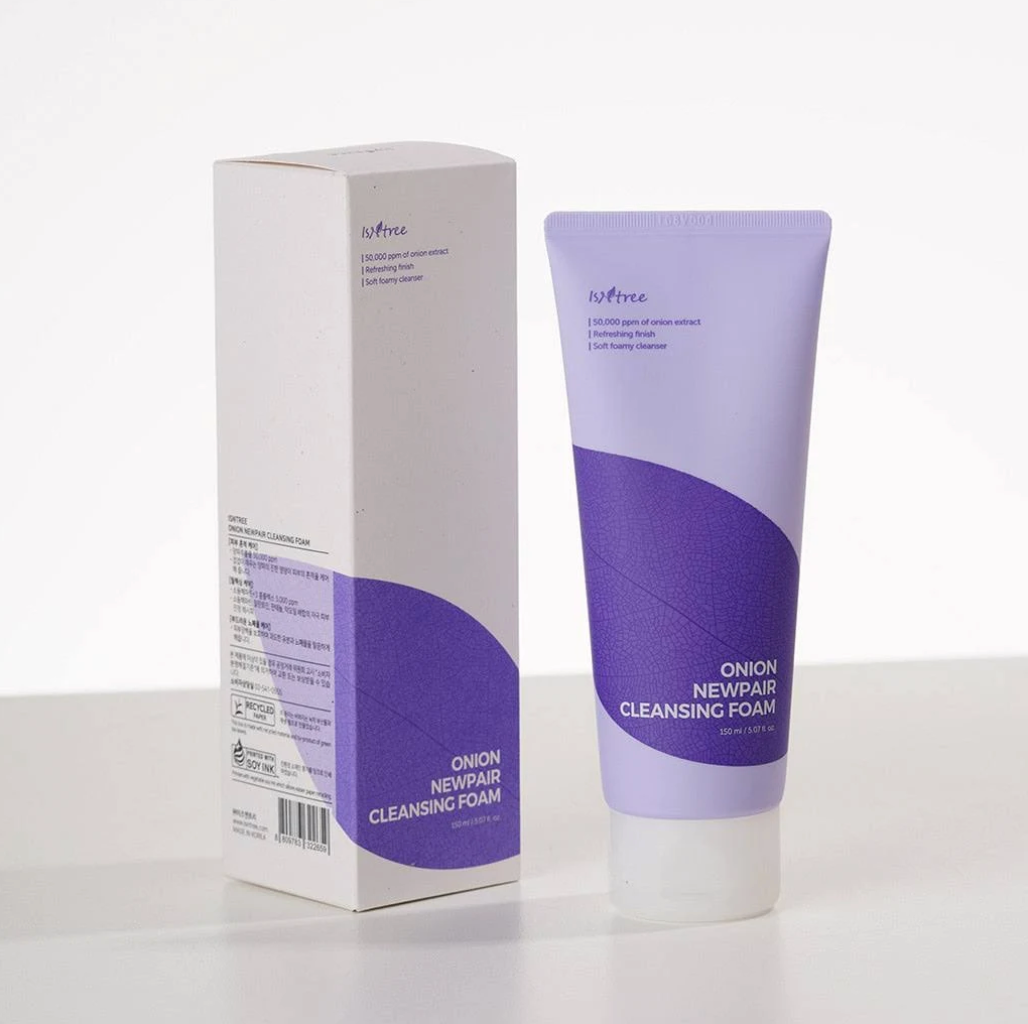 - Isntree Onion Newpair Cleansing Foam — 150ml gentle, creamy foam cleanser.